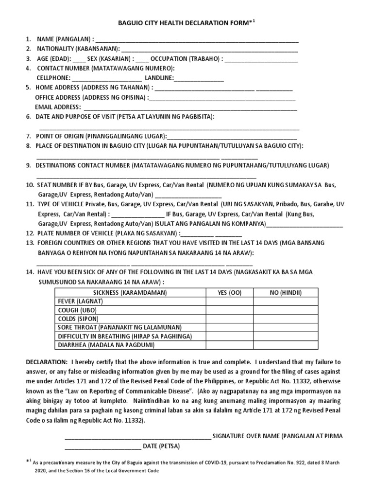 Health declaration form to protect your health public health officers need you to complete this form. Or had close contact with a case of covid 19. Your information is intended to be.
