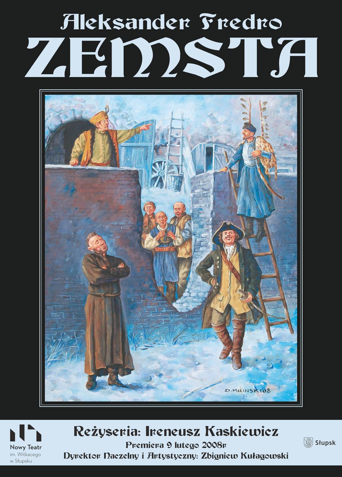 Zemsta fredry jest komedia opowiadajaca o sporze dwoch szlachcicow rejenta milczka i czesnika raptusiewicza o zamek ktorego byli mieszkancami a dokladniej o przedzielajacy go mur. Rezyserem i autorem scenariusza filmu zemsta na podstawie dramatu aleksandra fredry jest andrzej wajda. Scenarzysta i rezyserem filmu jest andrzej wajda znany i ceniony polski rezyser.